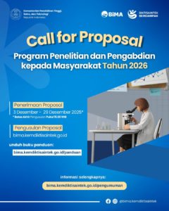 Dalam rangka mendukung pelaksanaan Tri Dharma Perguruan Tinggi serta meningkatkan mutu penelitian dan pengabdian kepada masyarakat, Direktorat Jenderal Riset dan Pengembangan melalui Direktorat Penelitian dan Pengabdian kepada Masyarakat (DPPM) membuka Penerimaan Proposal Program Penelitian dan Pengabdian kepada Masyarakat Tahun Anggaran 2026.